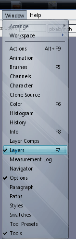 לאחר הפתיחה תפתחו את חלון ה Layers ע"י לחיצה על window - layers או F7 בשביל קיצור דרך