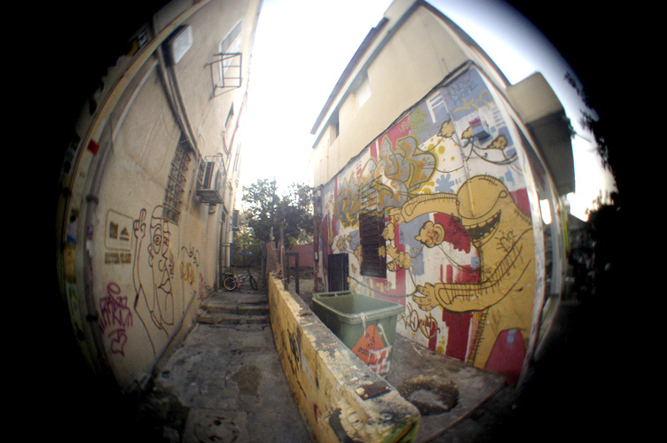 נתחיל עם תמונה קצת מטושטשת שאנחנו רוצים לחזק לה את הקווים, במקרה הזה תמונה של הסימטה המפורסמת משנקין בתל אביב עם הגרפיטי המגניב