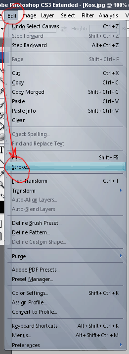 עכשיו נכנס בתפריט למעלה ללשונית Edit ולאחר מכן Stroke: