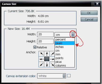 קודם כל.. כשהקובייה של relative מסומנת זה אומר שהמשטח עבודה ייגדל ביחס לתמונה, במידה וזה לא מסומן משטח העבודה שנקבע ימדד ממרכז התמונה, ז"א שאם התמונה שלנו היא ברוחב 200פיקסלים ונקבע רוחב של 20 פיקסלים בלי לסמן את הקופסא יישא מהתמונה שלנו רק רוחב של 20 פיקסלים לכן כרגע נוודא שזה מסומן כי אנחנו רוצים ליצור מסגרת