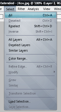 נלחץ על Select בתפריט למעלה ולאחר מכן על all שזה מה שמופיע ראשון בתפריט שיורד או לחילופין Ctrl+A כדי לסמן את כל התמונה