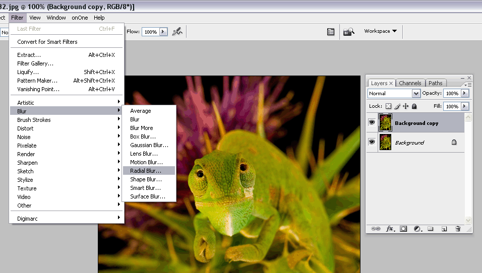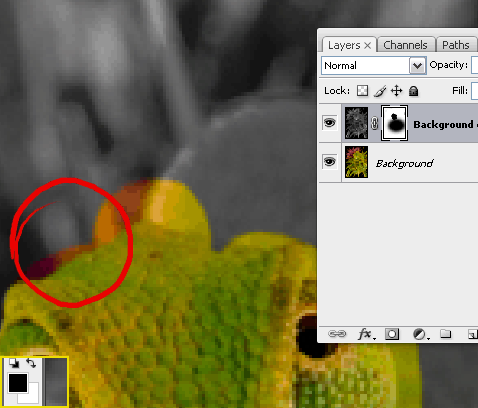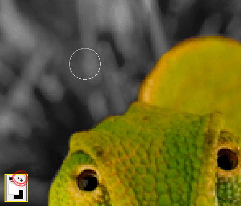 ובעזרת מברשת רגילה נצייר עיגול איפה שאנחנו לא רוצים שיהיה מטושטש, במקרה הזה סביב הפנים של הזיקית