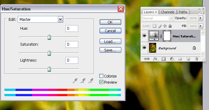 נבחר את המדיד האמצעי של ה Saturation ונוריד אותו למינימום כדי לקבל תמונה בשחור לבן