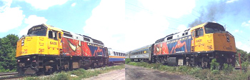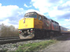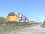 Sunday, Oct 2/05 Via's Train 73, with P42DC unit 920 in the lead, overtakes and passes a CN freight as they pass my position at Aldershot West. The freight had SD60F CN 5727, Dash 8,40CM, CN 2435 and ILC's sd40-2 6109. The Via was a double ended train, with F40PH 6407 trailing. For the video of this train click