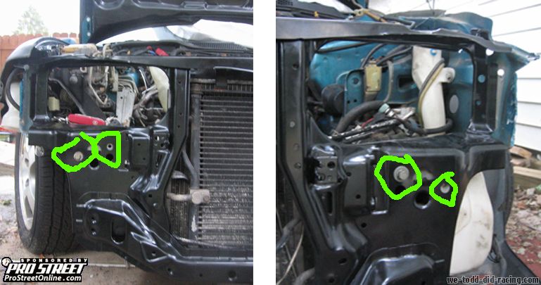 original holes you made while taking out the radiator support. Use the strongest
