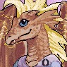 A beautiful tawny furred wolf with light blonde hair strolls by you. Her name