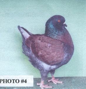 Photo #2 shows a blue cock in the T pattern check. In other breeds this T pattern is also referred to as "velvet". Pigeon geneticist Joe Quinn states that this T pattern blue is the best pattern to use if mating to black because it will produce a better, richer black color. I am currently trying a mating of T pattern blue to black, so we will see if this is true. In blue check Kings, the T pattern seems to be rarer than the open check, at least I know that I have seen far fewer T patterns than open checks.