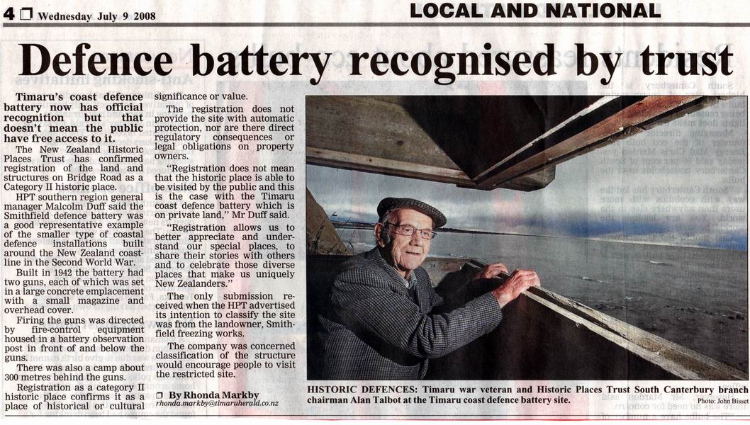 The above article was published in "The Timaru Herald" on Wednesday 09 July 2008.