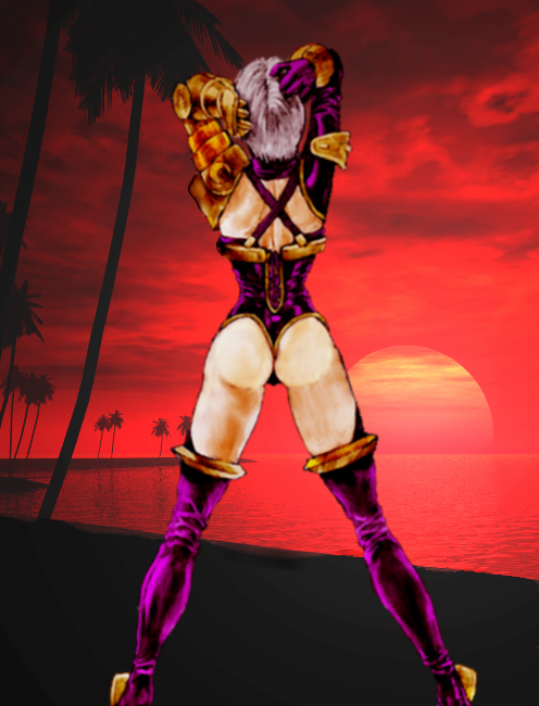 background, a sunset at the beach... pleasant. I altered the the background to be blood red to match her chaotic state. I