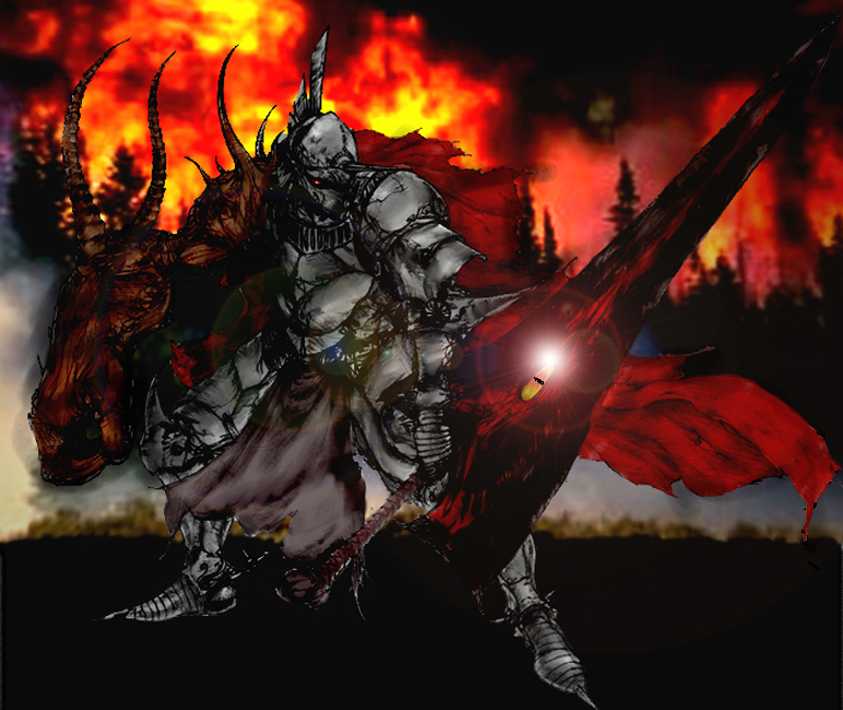 shading. I simply colored the cape, sword and hand, then used the burn tool to give it all a more menacing look. I also used