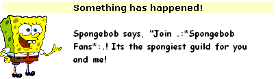 .:*WHATS TO COME*:. In the future, I will be adding other cool things to the guild, like a RAFFLE or an ITEM OF THE DAY. To this page, I'll add some cool Spongebob facts and new pictures. I'm always looking for new ideas, so be sure to tell me if you have one!!!!