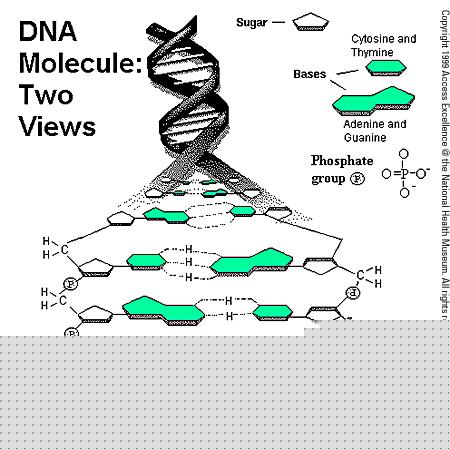 There are a few possible conformations of the DNA helix, but the most common is the B form. In this conformation, the double helix is right handed with 9.7-10 base pairs per turn. The B form helix forms alternative major and minor groves in the sugar phosphate backbone.