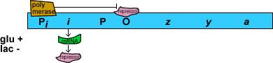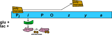 The normal or ground state of an E. coli cell is to have the lac operon repressed because there is enough glucose in the environment, which is preferentially used for energy instead of lactose.When lactose and glucose are both available a modified lactose called allolactose binds the repressor, changing its shape in a way that it can no longer bind to the operator.