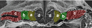 1- If the figure is a dorso-ventral cut of an 8 day mouse embryo, the lateral mesoderm is labeled Answer: c