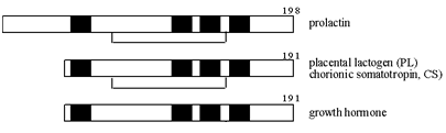 Growth hormone and prolactin belong to the same superfamily of hormones, which also includes chorionic somatotropin (CS). While there is a single gene for PRL in human chromosome 6, there are multiple genes for CS and GH on human chromosome 17.