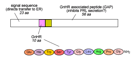 The gonadotropins are positively regulated by gonadotropin releasing hormone (GnRH), also known as LH releasing hormone (LHRH), from the hypothalamus. The gonadal steroids as well as inhibin (also from the gonads) are negative regulators. The gonads also secrete activins which may positivelly feedback to the pituitary. At certain times, estrogens may positivelly feedback.