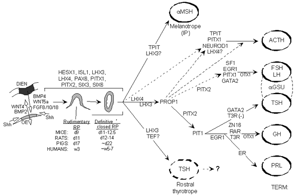 pituitary (ex. Pit-1), some become pituitary-specific (ex. Lhx3), some are pituitary-enriched,