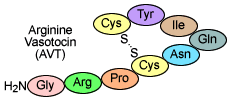 There are many other similar posterior pituitary hormones in animals other than humans, wiht different functions. For example, arginine vasotocin (AVT) has many putative roles in non-mammalian vertebrates and is found in the pineal gland an in fetal mammals. Vasotocin induces sexual activity (clasping) in salamanders, and oviposition (oviductal muscle contraction) in birds and reptles. Vasotocin and hydrins (longer, extended vasotocin molecules) control water balance in anphibians by controlling water reabsorption into skin and bladder. The hydrins have only been found in amphibians so far, not in birds nor reptiles.