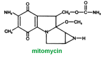 Mitomycin contains an azide ring, a urethane moiety and a quinine group. The molecule can undergo removal of an O-methyl group. The final product is capable of producing DNA inter- nd intrastrand crosslink. Mitomycin is used to treat GI tumors and has temporary benefits against other cancers.