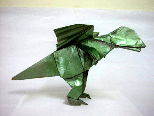This funny dino is created from a large sheet of square paper. Actually I am not quite satisfied with it. I am going to create a better one soon.