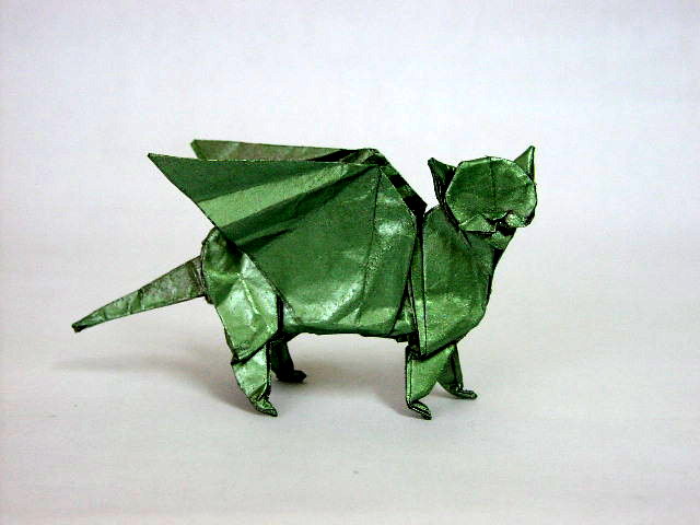 This winged cat model is created from a sheet of sqaure paper, without cutting. I am very pleased with this model.