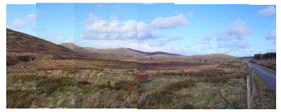 | QUARRY IN GLENQUEY? - November 2010 - It is planned to create a quarry in the Glenquey Moss in order to extract the sand and gravel that is there. Below is a composite picture of the area of the Glenquey Moss and the proposed quarry - The Glenquey Moss is above Glendevon and below the Glenquey Dam. The road on the right of the picture below is the private road from Glendevon (starts near the Castlehill Reservoir laybye on the A823) to the Glenquey dam. Pictures taken 25th February 2011 - Click on the small picture to see the larger version |