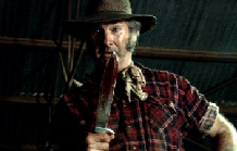 As night falls, they are approached by an old Aussie redneck named Mick. He offers them a ride to his garage to fix their car, and they willingly accept. After a long tow to the old mining site, they relax and end up falling asleep by the fire, while Mick starts working on the car. Liz awakes the next day, locked in some room with her arms and legs tied. She eventually frees herself, and hears Kristy screaming. She follows the screams to a garage, and sees Kristy tied to a post as Mick tortures her, while Ben is nowhere in sight.