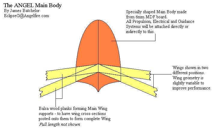 This demonstrates the manner in which the internal components will be organised, and how the wings will sweep. The geometry cannot be altered in flight, but the degree of sweep should afford some interesting experiemtns in lift factors.