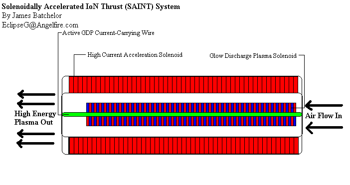 I have yet to buil any of these devices, as i am having a little trouble here getting the parts that I require. I am however confident that a full-up propulsive test of ANGEL will be possibel by summer, with flight tests conducted towards the autumn. The SAINT system will not function in vacuum obviously, but is capable of considerable power in the air, providing the mainstay of the thrust to escape Earth's gravity well, along with the conventional Biefeld-Brown wing and the GWS system. Once in space, the Massive-K wing alone will be enough to accelerate ANGEL to it's full cruising velocity (still being determined).