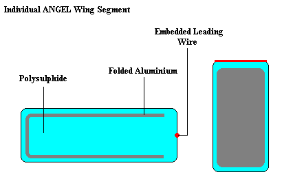 A small timing controller located in the main craft body will control the timing of the segment "firing". At any given time, one third of the entire wing will be active, with a half second overlap between one segment-set shutdown and the subsequent power-up of the next one. The timing will need to be tweaked based upon empirical observations to give ANGEL a smooth ride. Below is a close-up of an individual segment.