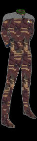 This is the standard Battle Dress Uniform of the Starfleet Marine Corps. It is nicked named the "Chameleon", due to it's ability (When Combinesd with Hazard Armour) to change color to match the surrounding enviroment. Marines will where this uniform when engaged in combat and field duties.