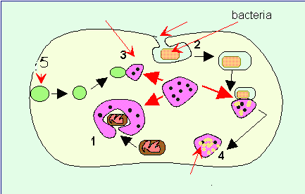 El esquema mudo siguiente representa la actividad fisiológica de los lisosomas: