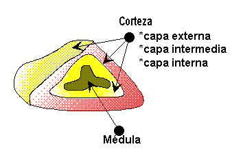 - Corteza : Formada por tres capas, cada una segrega diversas sustancias hormonales.