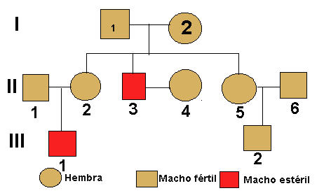 Un gen recesivo ligado al sexo (e) causa esterilidad en los machos. A la vista del pedigrí, responder a las siguientes preguntas: