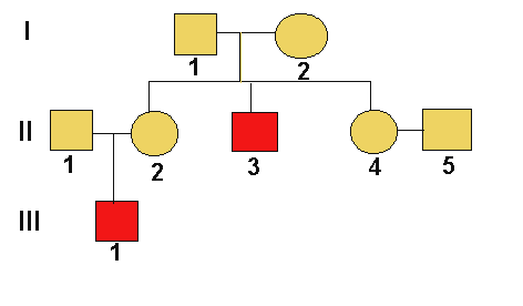 - Si la mujer II2 tuviese dos hijos varones, ? cuál sería la probabilidad de que