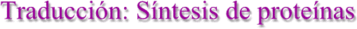 La síntesis de proteínas o traducción tiene lugar en los ribosomas del citoplasma. Los aminoácidos son transportados por el ARN de transferencia, específico para cada uno de ellos, y son llevados hasta el ARN mensajero, dónde se aparean el codón de éste y el anticodón del ARN de transferencia, por complementariedad de bases, y de ésta forma se sitúan en la posición que les corresponde.