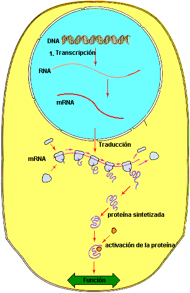 En el proceso de síntesis de proteínas, existe una molécula, el ARN, que actúa de intermediaria. Por lo tanto, en el proceso de expresión de la información