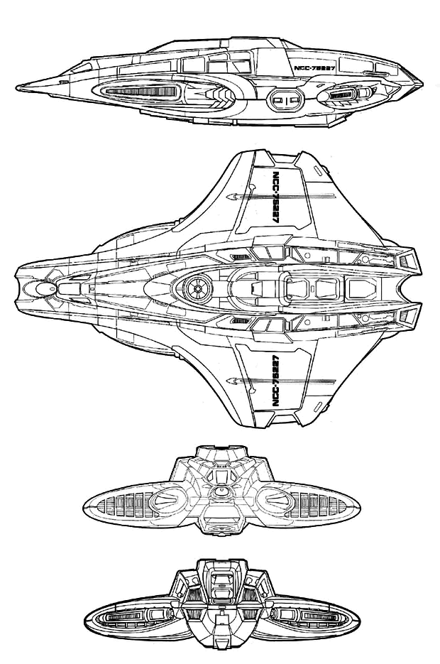 The aerowing design of the Talon-class Scout ship facilitates atmospheric operations, although it includes impulse and warp engines with the nacelles encased in the ship's body for interstellar operations, which is its standard design function. A miniature version of the deflector/long range sensor dish provides much more powerful sensors than similarly sized ships such as the standard operating configuration of a Danube-class Runabout.