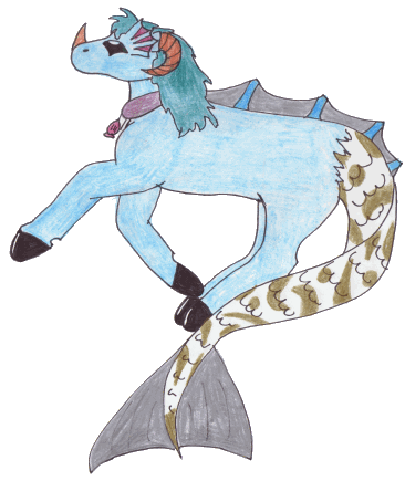 Don't be afraid *a rich voice rings in your head* It is just me, a harmless Seahorse. *he snorts with laughter. Another little equine type creature jumps out of the water and does a back flip then splashes back in.*