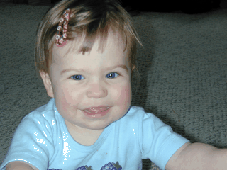 Vital Statistics: Rebecca is the first child of Bernadette and Gavin. She was born on March 18, 2002, which makes her yet another Pisces (e.g., a soft-hearted, weepy fish-girl) in a whole family of fish heads. She has light brown hair, blue eyes, and all her fingers and toes. She does not yet have any cavities (good job brushing and flossing, Rebecca! Keep up the good work!). Favourite Things: Rebecca is fond of eating, sleeping, screaming. When she is not sucking a lemon, Rebecca likes to drink beer.