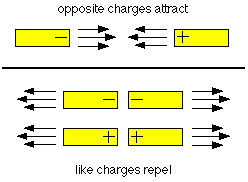 The Law of Electric Charge states that objects charged with the same charge will repel each other (go away from)and object with opposite charges will attract each other (come together).