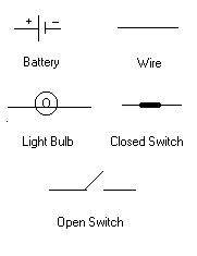 The battery is the power source provided to the circuit. Batteries make electricity by a chemical reaction. The elecrons flow from high potential (+) to low potential (-).