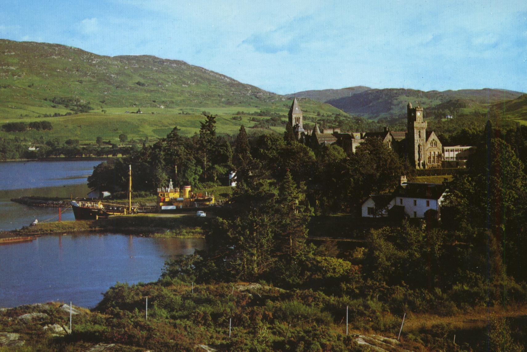 The Abbey, Fort Augustus Inverness-shire.(Standing on the shores of Loch Ness the abbey occupies the site of the firt which was established here after the 1715 Jacobite rising. The remains of the firt were offered to the Benedictines Order for the erection of a monastery, raised in 1882 to the status of an abbey. In succeeding years the establishment has grown in size and importance.)