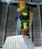 ![]() | Master Sword--this is the sword that is in the stone beyond the Door of Time. The first time you remove it, Ganondorf catches you and gets ahold of part of the Triforce. After you defeat the Forest Temple, you can replace the Master Sword in the altar to travel back in time. The Master Sword generally does not do as much damage as the Giant's Knife, but you must use it when fighting Phantom Ganon. |