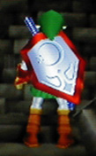 ![]() | Mirror Shield--you find this in Spirit Temple. Only Adult Link can use it. Use it to reflect light to specific places, especially in this temple. It can light up the suns on the walls. It is also the way through the Goddess of the Sand to get to the boss. Use it to reflect Twinrova's attacks, as well as to defend yourself from Ganondorf. | ![]() |