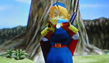 | The Zora Tunic--can only be worn by Adult Link. It is blue, and allows Link to walk underwater without drowning. King Zora will give it to you if you use Blue Fire (from the Ice Cavern) to thaw him from the red ice. You can also get one from the Zora Store (which you also have to thaw with Blue Fire) for 300 Rupees. | ![]() |