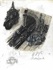 "Tunnel", drawing for "Robofok", 1989, pencil,ink and colors on paper, 20x30 cm