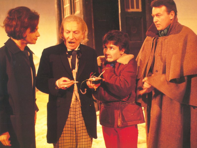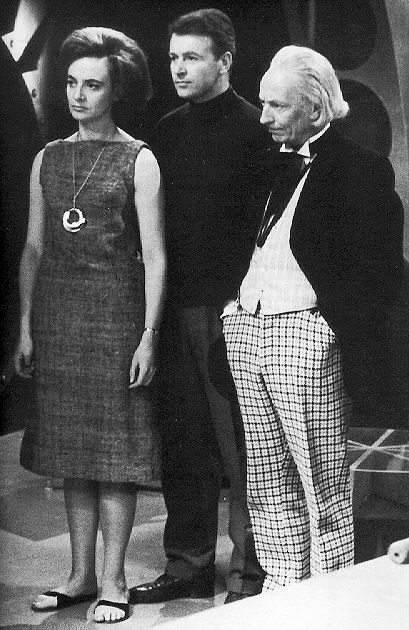 The First Doctor's original companions: Barbara (Jackie Hill), Ian (Russell Enoch), and Susan (Carol Ann Ford).