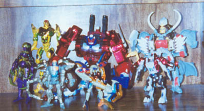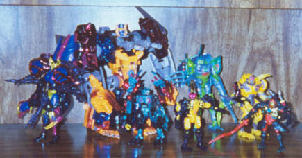 More Maximals! The big guy in the back is Optimal Optimus (previesly picture), TM2 Blackarachnia, TM2 Jawbreaker, TM2 Cybershark, TM2 Stinkbomb, TM2 Optimus Minor, TM2 Cheetor.....(I have alot of Transmetal 2 Maximals in this pic...)