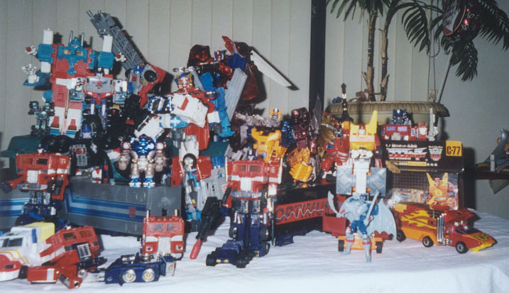 To see more pics of my Optimus Prime Collection; click here>>> Click here for more pics of Big Convoy>>> This is a part of my collection that I have been wanting to present for a while now. This is my Optimus Prime Collection. Including Optimus Primal, and my Japanese Optimus Primes. But in Japan, Optimus Prime is called Convoy. So for starters; we have: In order of Genre... G1 Optimus Prime (3) (two w/ trailers, one in peices, None complete) Ultra Magnus (incomplete), Rodimus Prime (incomplete) Powermaster Optimus Prime (mostly complete) G2 Optimus Prime, Hero Optimus Prime (w/ broken leg), Laser rod Optimus Prime Machine Wars Optimus Prime Beast Wars Optimus Primal (bat), Optimus Primal (gorilla), Transmetal Optimus Primal, Japanese 'mini version' Transmetal Optimus Primal, Optimal Optimus (X3), Primal Prime Beast Wars II (Japanese Transformers) LioConvoy Beast Wars Neo (Japanese continuation of Beast Wars II) Big Convoy (not pictured with group, pictured separatly) Car Robots 2000 (Another Japanese Transformers) In America it's called Robots in Disguise (RID) Super Fire Convoy RID Ultra Magnus, Scourge Armada Optimus Prime w/ minicon, and trailer, and Optimus Prime, w/ minicon Overrun G1 remakes Optimus Prime, Ultra Magnus, Rodimus Prime (Japanese version) Trivia! Just in case no one's noticed; in the group pic neither Superfire Convoy or RID Ultra Magnus is in the pic, but Omega Prime (the robot they combine into is seen) Well obviosly I combined them. The Japanese Convoy can combine with the American Ultra Magnus. Now in Japan, the combined robot is called God Convey, because as i have already said Superfire Convoy is Prime's Japanese name, Ultra Magnus' Japanese name is God Magnus. In America however, the combined robot is called Omege Prime. So Seeing how this Transformer is international, I like to call him Omega Convoy. :)